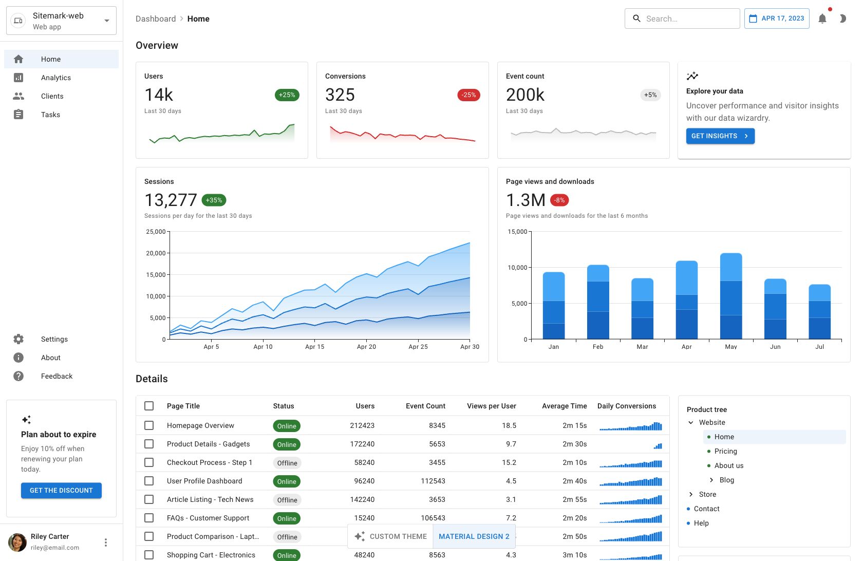 The new templates can be toggled between the default Material Design and a fully custom theme that's shared across the entire suite, so you can dig deep into the best approaches for component customization—or just grab the pieces you like best and start building from there.